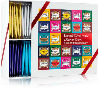 Au design coloré et festif, ce coffret se compose de 9 mélanges phares de la maison Kusmi Tea.