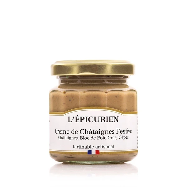 Purée de châtaignes* 47% (châtaigne 50%, eau), bloc de foie gras de canard* 22% (foie gras canard 88%,