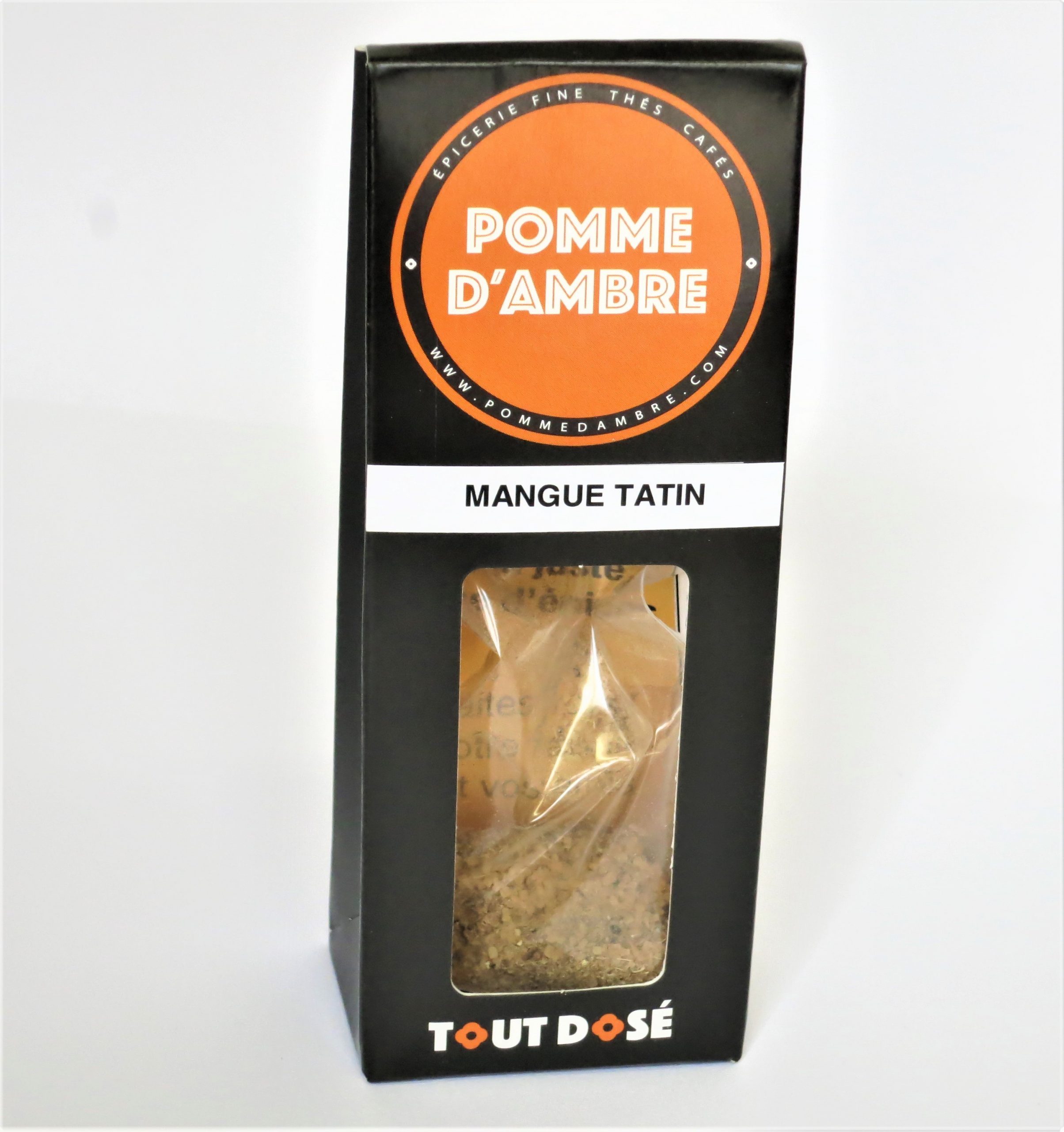 Pour être sûr de déguster une Mangue tatin justement épicée, Pomme d’Ambre a concocté ce Tout Dosé, mélange d’épices prêt à l’emploi, préparé avec les meilleures épices du monde.
