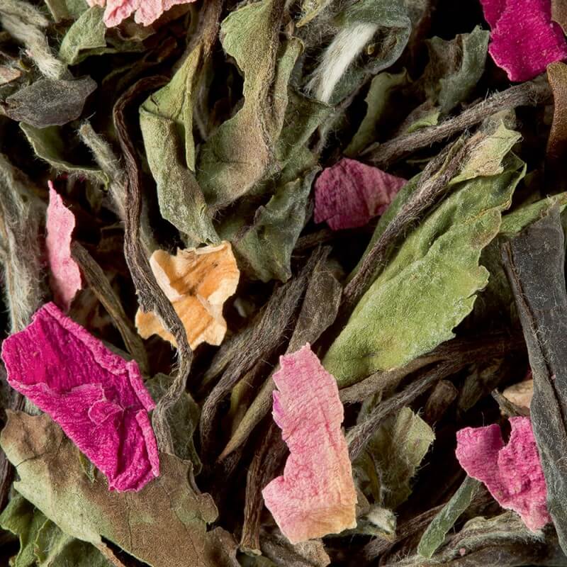 Thé blanc, arômes, pétales de fleurs.